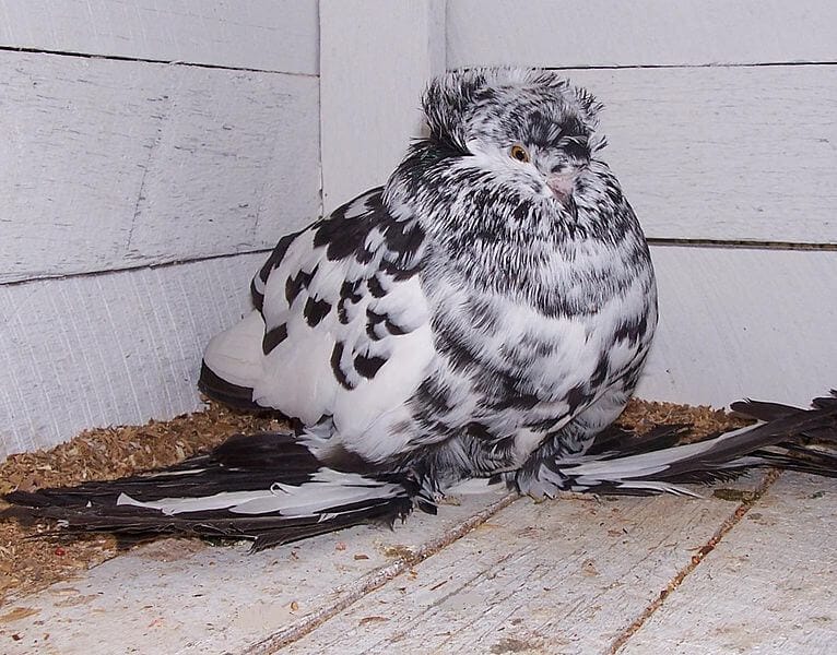 This bird does not look like a pigeon at all, rather it looks like a pigeon’s head stuck on a crow’s body. It is in the group of pigeons known as “blowers”. The pouters have large chest areas.